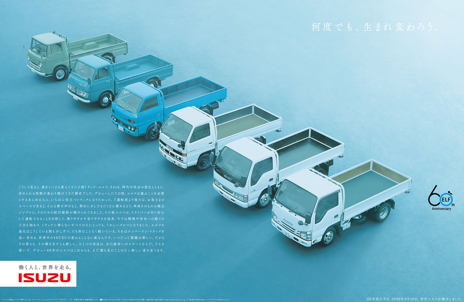| タイトル | 小型トラック「エルフ」誕生60周年記念新聞広告 |